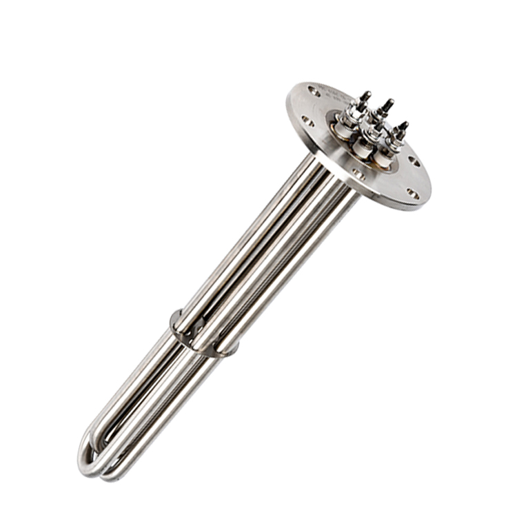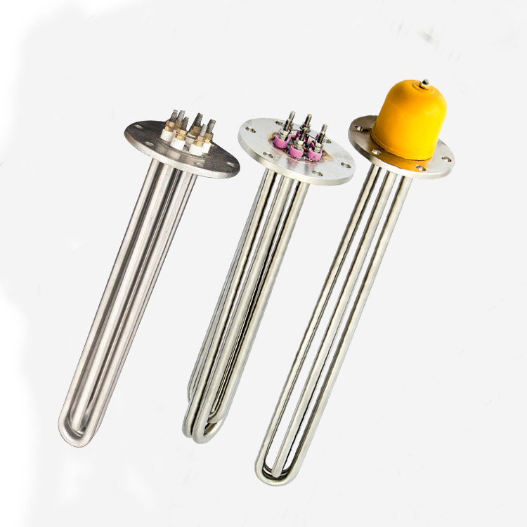 法兰式加热管是由多支加热管焊接在法兰上集中加热。主要用于敞开式、封闭式的溶液箱和循环系统中加热用。法兰式不锈钢加热管高度密集式、结构紧凑。由于整体短而密集,故稳定性好,安装无需支架。组合式大多采用氩弧焊接方式使电热管于法兰连接,也可利用紧固装置的形式,即每支电热管上焊由紧固件。然后与法兰盖采用螺母锁紧。管子于紧固件采用氩弧焊接,永不泄漏。紧固件密封处采用科学的工艺。单支更换极为方便,大大节约以后的维修成本。
