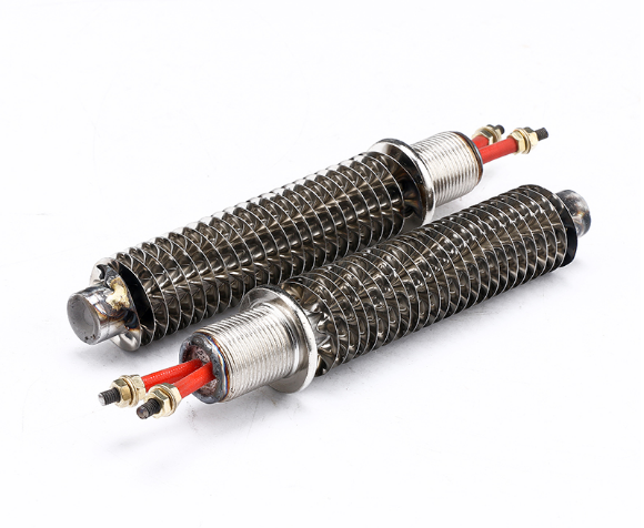 翅片式电加热管,是在普通元件表面缠绕金属散热片,与普通元件相比散热面积扩大了2~3倍,即翅片元件所允许的表面功率负荷是普通元件的3~4倍。由于元件的长度缩短,使得本身的热损失减小,在相同的功率条件下具有升温快、发热均匀、散热性能好、热效率高、使用寿命长、加热装置体积小,成本低等优点。根据用户要求进行了合理的设计,便于安装。