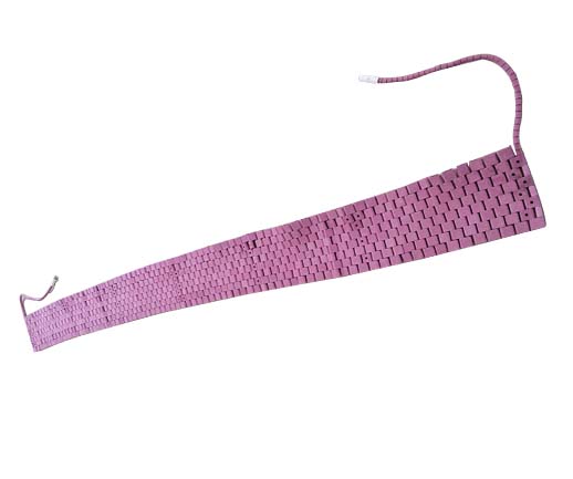 LCD型履带式陶瓷加热器是采用强度高,热辐射性能好的氧化铅陶瓷元件作绝缘材料,用上等镍铬丝缆作发热体,穿接好的加热器可以是矩形或三角形。镍铬丝缆与导线采用新工艺焊接,焊接的接头全部埋入陶瓷元件内绝缘可靠,陶瓷加热器与控制设备配套即成为完整的热处理系统,它们的连接采用专用接插件,并可根据工件与控制设备的距离配置接长导线。长度尺寸可以灵活改变制作,履带式陶瓷加热器,应视工件的几何形状、壁厚及热处理工艺选择相应的规格。